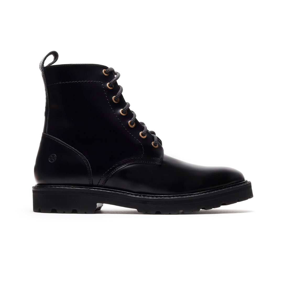 Botín estilo chelsea con altura hasta el tobillo, un modelo que se puede adaptar a cualquier entorno, que además de lucir bien tiene un toque de alto brillo, lo que lo convierte en bastante duradero y funcional.
