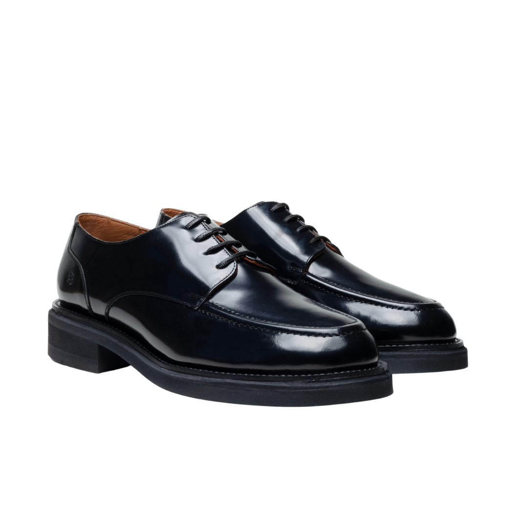 Corte. Piel de ternera tipo cordobán. Inspirado en las pieles europeas curtidas en ancas de potro, este acabado cuenta con un terminado bitonado tipo camaleón; con un quiebre pegado, altamente durable y resistente a dobleces. Su alta lustrocidad permite que, con tan sólo una pasada de trapo o cepillo, requiera poco mantenimiento y conserve su peculiar brillo por mucho más tiempo.